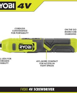RYOBI 4 volt hızlı dönüşlü lityum iyon akülü 1/4 inç altıgen tornavida seti PLZ265