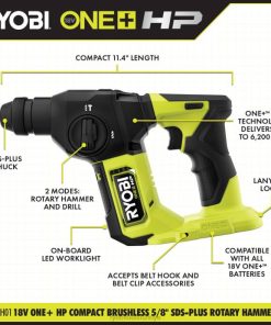RYOBI 18v one+ 1/2 sds-plus döner kırıcı seti, (1) 4,0 ah akü ve şarj cihazıyla birlikte PLZ238