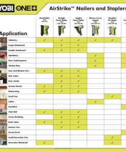 ryobi 18v one+ sistemi, ryobi airstrike alet ailesinin en yeni üyesi olan 18v one+ 16ga kablosuz son kat çivi çakma makinesini sunar. Bu 16 kalibreli son çivi çakma tabancası, gürültülü kompresörlere, hacimli hortumlara veya pahalı gaz kartuşlarına olan ihtiyacı ortadan kaldıran hava saldırısı teknolojisine sahiptir. bu, şantiyede veya evde daha hızlı kurulum ve daha kolay manevra anlamına gelir. Bu aletin yaygın uygulamaları arasında taç ve tabanın takılması, ön panolar gibi dış kaplamalar, dekoratif geçiş kaplamaları ve garaj kapısı kaplamalarının yanı sıra şömine raflarına süslü parçaların montajı yer alır. hava saldırısı sonlandırma çivi çakma makinesi tüm ryobi 18v one+ pillerle çalışır. p108 4ah yüksek kapasiteli lityum+ pili (ayrıca satılır) kullanarak şarj başına 800’e kadar çivi çakma kapasitesiyle neredeyse her türlü bitirme işinin üstesinden gelin).Hava saldırısı serisindeki diğer araçlar arasında 18v one+ 18ga kablosuz çivi çakma makinesi (p320) ve 18v one+ 18ga kablosuz dar taçlı zımba (p360) yer alır. 18v one+ 16ga akülü çivi çakma makinesi, çıplak bir alet olarak satılır ve her alet satın alımında pillere ve şarj cihazlarına ek para harcamadan one+ koleksiyonunuzu geliştirmenize olanak tanır. Daha hafif ve daha iyi performans için lityum iyon veya lityum+ pillere geçin.