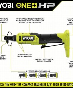 RYOBI 18v one+ hp kompakt fırçasız 3/8 yüksek hızlı cırcır seti PLZ256