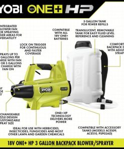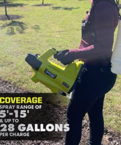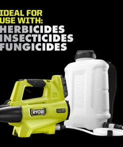 - fan kapalıyken şarj başına 28 galona kadar veya fanla şarj başına 5 galona kadar püskürtme ryobi 18v one+ 2ah pil ile