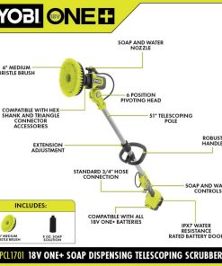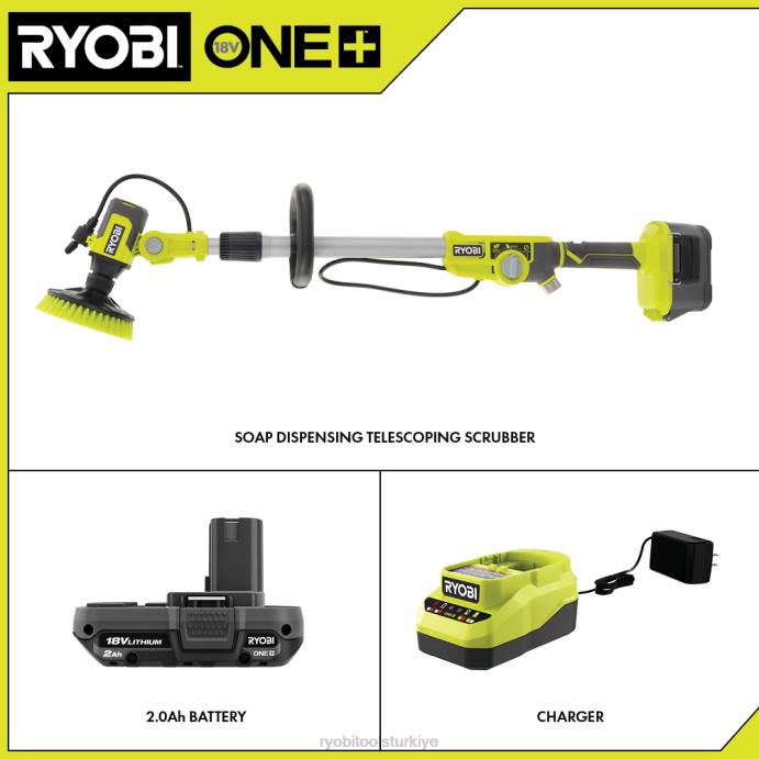 RYOBI 18v one+ sabun dağıtımlı teleskopik temizleme seti PLZ2565