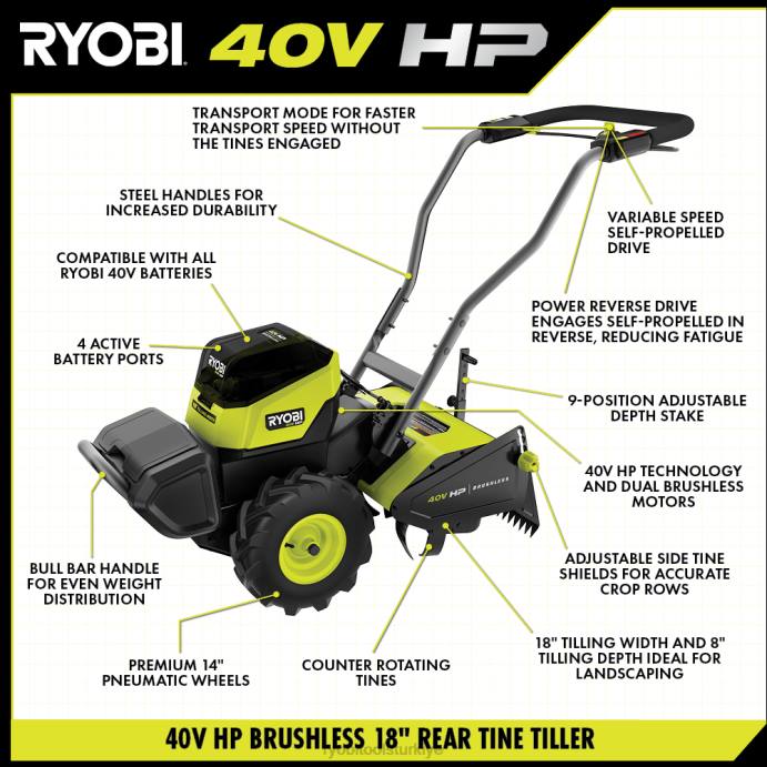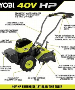 ryobi 40v hp fırçasız 18″ arka çatal yeke kitiyle ryobi 40v sistemine girin. 40v hp teknolojisi, 208 cc’lik bir gaz yekesi, bu yekeyi gerçek bir gaz alternatifi haline getirir. 40v hp teknolojisi, iki fırçasız motoru ve ters yönde dönen çatalları birleştirerek 18″ toprak işleme genişliği ve 10″ toprak işleme derinliği ile yeni zeminler açma ve zorlu arazilerin üstesinden gelme gücü sağlar. Şarj başına 3.000 ft2’ye kadar kapasiteye sahip, 1 tenis kortu büyüklüğünde olan bu yeke, büyük bahçelerden küçük çiftliklere kadar her şey için mükemmeldir. Değişken hızlı, kendinden tahrikli motorla donatılmıştır ve ters yönde bile daha sorunsuz çalışma ve zahmetsiz kontrol sağlar. Taşıma modunda, çatalları devreye sokmadan kendi kendine sürüş fonksiyonunu etkinleştirin. 9- düğmeyi kullanarak toprak işleme derinliğinizi seçin.ayarlanabilir derinlik kazığını konumlandırın ve çevredeki bitkileri korumak ve mahsul sıralarının doğru olmasını sağlamak için ayarlanabilir yan çatal korumasını kullanın. Çıkarılabilir kum ağırlığı ve destek çubuğu, ağırlık eklemenize ve ağırlığı eşit şekilde dağıtmanıza olanak tanır. Birlikte verilen 40v çift bağlantı noktalı hızlı şarj cihazıyla (2) 40v 6ah pilleri aynı anda 60 dakikadan kısa sürede şarj edin. hepsinden iyisi, herhangi bir 40v pilin herhangi bir 40v ürünle çalıştığı ryobi 40v sisteminin bir parçasıdır. Bu ryobi 40v hp fırçasız 18″ arka çatal yeke kiti, ryobi 5 yıllık üretici alet garantisi, 3 yıllık üretici pil garantisi ve ry40702 40v hp fırçasız 18″ arka çatal yeke, (4) op40605 40v 6ah lityum piller ile desteklenir, op409 40v çift bağlantı noktalı hızlı şarj cihazı ve kullanım kılavuzları.