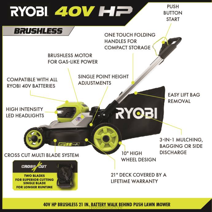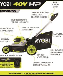 RYOBI 40v hp fırçasız 21 itmeli çok bıçaklı çim biçme makinesi seti PLZ2239