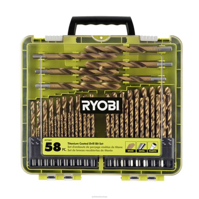 ryobi 58 parçalı titanyum kaplamalı matkap ucu setini tanıtıyor. Bu titanyum kaplı matkap ucu seti, ahşap, metal ve plastikle kullanıma uygun, çok çeşitli delme uygulamaları için mükemmeldir. Titanyum kaplama uçların dayanıklılığını artırır. Eğilebilir kit tasarımımızla parçalarınıza kolayca erişin. bu kit, çeşitli boyutlarda 58 adet titanyum kaplı matkap ucu içerir.