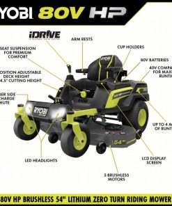 ryobi’nin ilk lityum iyon pille çalışan sıfır dönüşlü çim biçme makinesini tanıtan ryobi 80v hp 54″ lityum elektrikli ztr*.hp teknolojisi ve 80v piller, 42 beygir gücüne eşdeğer güç sağlamak üzere bir araya geliyor Benzinli motor*, gazlı çim biçme makinesinin zahmetini ve bakımını ortadan kaldırırken, bu sürücü, 5 fırçasız motor, (3) 80v 10ah piller ve (4) 40v 12ah pillerin yardımıyla şarj başına 4 dönüme kadar kesim yapar. 5 saatte tamamen şarj olan şarj cihazı, böylece bir sonraki işinize hazır olursunuz. Devrim niteliğindeki iDrive sistemi, nesnelerin etrafında geleneksel ztr’ye göre daha kolay manevra yapmak için sezgisel tek elle kumanda kolu direksiyonu kullanır. Yenilikçi LCD ekran çalışma süresini, pil ömrünü, ve kullanım sırasında kesme/sürüş hızını artırırken, sürüşlü çim biçme makinesi uygulaması şarj süresini ve aküyü izlemenize olanak tanıruzaktan hayat. Bu binicili çim biçme makinesi, üstün kesme ve malçlama performansı sağlayan çapraz kesimli çoklu bıçak sistemine sahiptir ve 12 noktalı yükseklik ayarı, 1,5″ ile 4,5″ arasında mükemmel kesme yüksekliğini seçmenize olanak tanır. kauçuk yan boşaltma kanalı çevre düzenlemesinde manevra yapmayı kolaylaştırır, böylece kullanıcılar kesebilecekleri yerle sınırlı kalmaz. Konfor ve rahatlık göz önünde bulundurularak tasarlanan bu çim biçme makinesinde birinci sınıf koltuk süspansiyonu, telefonları şarj etmek için 2 USB bağlantı noktası, bir saklama bölmesi ve led farlar bulunur. mobil hizmet belirli bölgelerde mevcuttur. Çim biçme makinenizin bakıma ihtiyacı varsa, sertifikalı bir ryobi destek teknisyeni doğrudan evinizden teşhis ve servis hizmeti verebilir. Bazı servisler çim biçme makinenizi ülke çapındaki 300’den fazla servis merkezinden birine getirmenizi gerektirebilir. Ryobi 80v hp fırçasız 54″ lityum elektrikli sıfır dönüşlü çim biçme makinesi sayesinde çim bakımı asla eskisi gibi olmayacak.