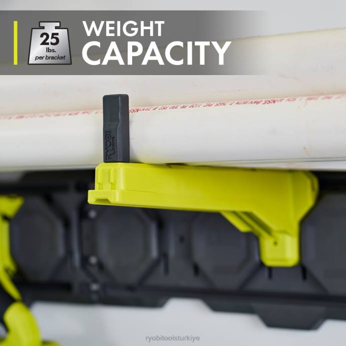 ryobi link modüler depolama sistemi, depolama endüstrisinde devrim yaratarak hayatınızı düzenlemenize, erişmenize ve taşımanıza olanak tanıyor. Ryobi Link 2’si 1 arada raf aparatı, uzun inşaat malzemelerini depolamak veya rafa dönüştürmek için tasarlanmıştır. PVC, kereste, dübeller, çubuklar vb.’yi güvenli bir şekilde tutmak için malzeme tutma tırnaklarını kullanın veya braketleri bir bağlantı 21″ katı raf veya bağlantı 21″ tel rafla eşleştirin. Bir rafı tutmak için iki adet 2’si 1 arada braket kullanın veya iki rafı yan yana tutmak için orta braketi paylaşan üçüncü bir braket ekleyin. Arka arkaya bir ilave braket ve raf ekleyerek raf sisteminizi genişletmeye devam edin. Hepsinden iyisi, m’nizi sorunsuz bir şekilde bağlamak için aynı kilitleme teknolojisini kullanan ryobi link modüler depolama sistemi ürün serisinin bir parçasıdır.Mobil ve sabit depolama ihtiyaçları. ryobi link modüler depolama sistemi ile alanınıza sahip olun.