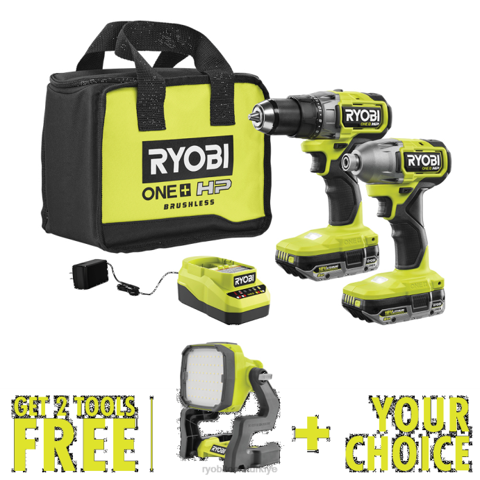 RYOBI Ücretsiz 18v one+ hibrit led çalışma ışığı ve ücretsiz seçim aracı içeren 18v one+ hp fırçasız 2 aletli kombo kit PLZ212