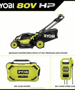 RYOBI 80v hp fırçasız fısıltı serisi 30 çapraz kesim kendinden tahrikli çim biçme makinesi PLZ2233