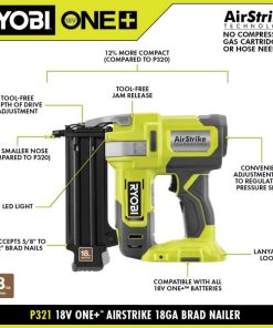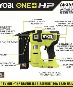 RYOBI 18v one+ hp fırçasız hava saldırısı 18ga brad çivi çakma makinesi PLZ2170