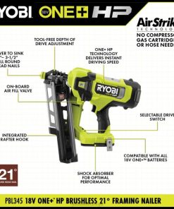 RYOBI 18v one+ hp fırçasız hava saldırısı 21 derece çerçeveleme çivi çakma seti PLZ2169