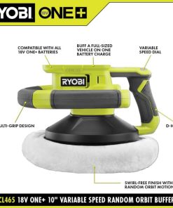 RYOBI 18v one+ 10 değişken hızlı rastgele yörünge tamponu PLZ2122