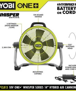 RYOBI 18v one+ hibrit fısıltı serisi 14 hava şoku fanı PLZ2495