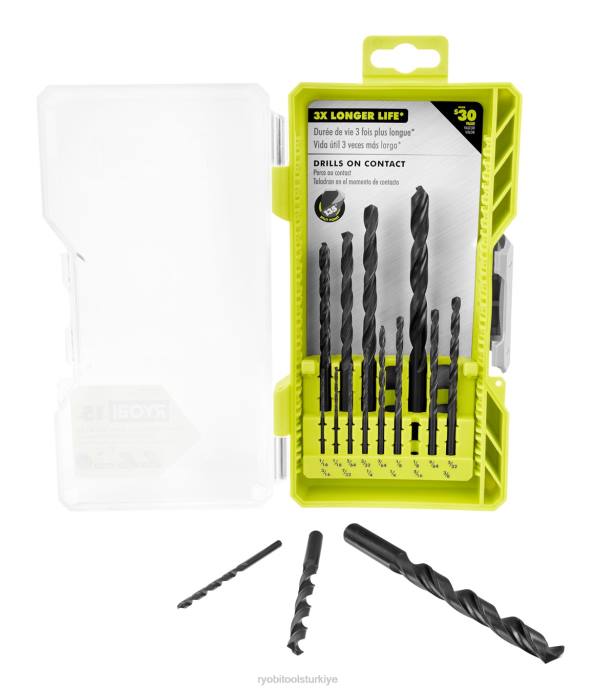 ryobi, 15 parçalı yuvarlak saplı siyah oksit matkap ucu setini tanıtıyor. Bu delme ucu çeşitleri ahşap, metal ve plastik yüzeyler dahil olmak üzere malzemeler için mükemmeldir. Uçlar, üstün dayanıklılık ve 3 kat daha uzun ömür sunmak için siyah oksit kaplamalı yüksek hız çeliğinden yapılmıştır. Bu uçların bir başka özelliği de temas halinde delmek ve ucunuzun yürümesini önlemek için 135 derecelik ayrılma noktasıdır. şeffaf kasa kapağı daha iyi erişim kolaylığı için görünürlük sağlar. Bu ürün yelpazesi, tüm kendin yap ihtiyaçlarınız için 1/16″ ila 3/8″ arasında değişen uçları içerir. bu set şunları içerir: (2) 1/16″ siyah oksit matkap ucu, (1) 5/64″ siyah oksit matkap ucu, (1) 3/32″ siyah oksit matkap ucu, (1) 7/64″ siyah oksit matkap ucu , (2) 1/8″ siyah oksit matkap ucu, (1) 9/64″ siyah oksit matkap ucu, (1) 5/32″ siyah oksit matkap ucul uç, (1) 3/16″ siyah oksit matkap ucu, (1) 7/32″ siyah oksit matkap ucu, (2) 1/4″ siyah oksit matkap ucu, (1) 5/16″ siyah oksit matkap ucu , (1) 3/8″ siyah oksit matkap ucu.
