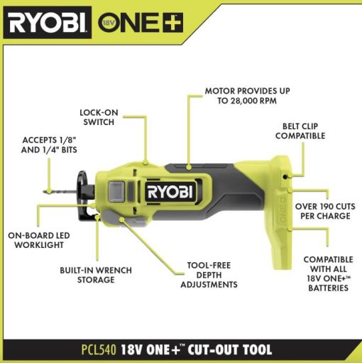 ryobi 18v one+ sisteminizi ryobi 18v one+ kesme aletiyle genişletin. Güçlü motor, 28.000 rpm’ye kadar hız sağlarken aynı zamanda şarj başına 190’ın üzerinde kesim sağlar. Yerleşik bir LED çalışma ışığıyla donatıldığında gelişmiş kesim görünürlüğü deneyimi yaşayacaksınız. Bu alet 1/8″ ve 1/4″ uçları kabul ederken aynı zamanda dahili anahtar saklama alanıyla hızlı ve kolay uç değiştirme olanağı sunar. 18v one+ kesme aletinde sürekli kesim için bir kilitleme anahtarı bulunur. hepsinden iyisi, hepsi aynı pil platformunda çalışan 280’den fazla kablosuz üründen oluşan ryobi one+ sisteminin bir parçasıdır. Bu 18v one+ kesme aleti, ryobi 3 yıllık üretici garantisiyle desteklenir ve (1) 18v one+ kesme aleti ve kullanım kılavuzunu içerir. pil ve şarj cihazı ayrı satılır.