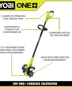 ryobi 18v one+ kültivatör, çiçek tarhlarında ve yükseltilmiş bahçelerde kullanım için ideal bir araçtır. 4 adet ağır hizmet tipi çelik çatal ayarlanabilir olup, 6″ – 8″ toprak işleme genişliğine izin vererek bahçe hazırlığını hızlı ve kolay hale getirir. Bu kültivatörü bahçe sıraları arasında bakım yapmak, bahçe hazırlığı yapmak veya küçük alanlarda toprağı gevşetmek için kullanın. 3 çalışma modu (düşük, orta ve yüksek) mükemmel kullanıcı çok yönlülüğü sağlar. en düşük ayar çalışma süresini uzatmak ve zemini kırmak için mükemmeldir; orta ve yüksek ayarlar ise kırık toprakların havalandırılması ve karıştırılması için idealdir. Bu alet, daha büyük kültivatörlerle karşılaştırıldığında kompakt ve hafiftir, bu da taşınmasını ve saklanmasını kolaylaştırır. Daha fazla zaman geçirebilmeniz için 40 dakikaya kadar çalışma süresi sağlayan 18v one+ 4ah pil dahildiryetiştirmek. bu kültivatör ve birlikte verilen 18v one+ 4 ah, aletler, piller ve şarj cihazlarından oluşan ryobi 18v one+ platformuyla uyumludur. ryobi 18v one+ kültivatör ve 18v one+ pil, 3 yıllık sınırlı garantiyle desteklenmektedir.