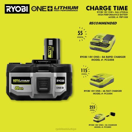 RYOBI 18v one+ 8ah lityum yüksek performanslı pil PLZ2679