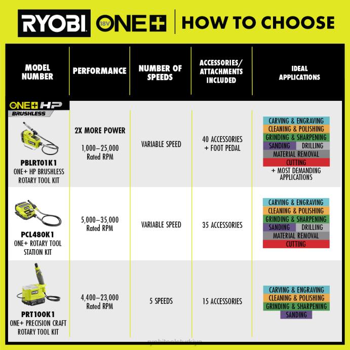 ryobi 18v one+ döner alet istasyonunu tanıtıyor. Bu araç, kullanıcıların çeşitli projeleri tamamlamak için 5.000 – 35.000 nominal rpm arasından seçim yapmasına olanak tanıyan değişken hızlı arama özelliğiyle gelişmiş güç sağlar. Bu döner alet istasyonu aynı zamanda sınıfının en sessizidir ve bu da onu çoğu çalışma alanında kullanım için mükemmel kılar. Birlikte verilen 35 aksesuar ve yerleşik aksesuar saklama alanıyla döner alet istasyonu, çeşitli uygulamaları tamamlarken kolaylık sağlar. 36 inç esnek şaftlı kalem tasarımı hassasiyeti ve konforu en üst düzeye çıkarır. Bu alet aynı zamanda aksesuarların değiştirilmesini hızlı ve kolay hale getiren, 4 kat daha hızlı aksesuar değişimine sahip yeni, yenilikçi, hızlı değiştirilebilen pense sahiptir. Kaymayı azaltan lastik ayaklar ve entegre asılı anahtar delikleri ile 18v one+ döner alet kolaydırkullanımı ve saklanması kolaydır. Ryobi 3 yıllık üretici garantisiyle desteklenen bu döner alet, 18v one+ 2ah pil, 18v one+ şarj cihazı, 36 inç esnek şaft, 35 adet taşlama/kesme/zımparalama/parlatma aksesuarı, bir aksesuar saklama kutusu, anahtar ve bir adet anahtar içerir. Kullanım klavuzu.