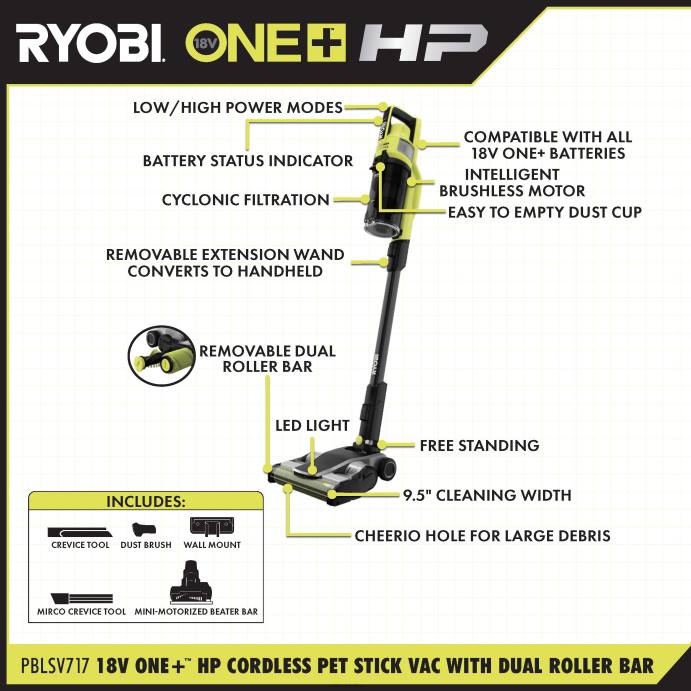 ryobi, tabandan tavana temizlik için kablosuz kolaylık sağlayan çift silindirli çubuklu 18v one+ hp kablosuz evcil hayvan sopası kitini temizlik kategorimize sunuyor. Bu geliştirilmiş çubuklu süpürge yalnızca 2 kat daha fazla emiş gücü sağlamakla kalmaz, aynı zamanda %30 daha hafif ve %50 daha sessizdir. akıllı fırçasız motoru gelişmiş elektronik parçalar ve 4ah yüksek performanslı pille birleştirirseniz daha uzun süre (şarj başına 60 dakikaya kadar) ve daha verimli çalışan bir elektrikli süpürgeye sahip olursunuz. çift silindirli çubuk, yumuşak bir rulodan ve güçlü bir kavrama sağlayan bir fırça rulosundan yapılmıştır. eklenen peluş rulo, sert zeminlerdeki döküntüleri daha etkili bir şekilde toplamak üzere tasarlanmıştır. siklonik filtre, evcil hayvan kürkü de dahil olmak üzere tozu ve alerjen maddeleri %99,9’a kadar yakalar. Silindir çubuğundaki LED ışıklar toz, kir ve kirleri aydınlatırhava. boşaltması kolay toz haznesi ve çıkarılabilir silindir çubuğu, elektrikli süpürgenizi hızlı bir şekilde temizlemenize ve bakımını yapmanıza olanak tanır. bu kit iki ek aksesuar içerir. Mini motorlu çırpıcı çubuğu, kullanıcılara yatak takımı ve döşeme gibi daha küçük yüzeylerde güçlü emiş gücü sağlar. Mikro aralık başlığı, kullanıcıların dar alanlara girerek küçük toz parçacıklarını toplamasına olanak tanır. Uzatma çubuğunu çıkardığınızda artık arabalardaki, merdivenlerdeki, hassas yüzeylerdeki ve dar alanlardaki pislikleri birlikte verilen aralık başlığı ve toz fırçasıyla temizlemek için bir el süpürgesine sahip olursunuz. Bu elektrikli süpürge kendi başına durur ve kullanımdan sonra rahatça saklanabilmesi için bir duvara montaj aparatı içerir. Ryobi 3 yıllık üretici garantisiyle desteklenen, çift silindirli çubuklu 18v one+ hp kablosuz evcil hayvan sopası vakum kiti, mini motorlu çırpıcı çubuğu, aralık başlığı, mikro aralık başlığı, toz fırçası, duvara montaj aparatı, 18v 4ah yüksek performanslı pil, şarj cihazını içerir ve kullanım kılavuzları.