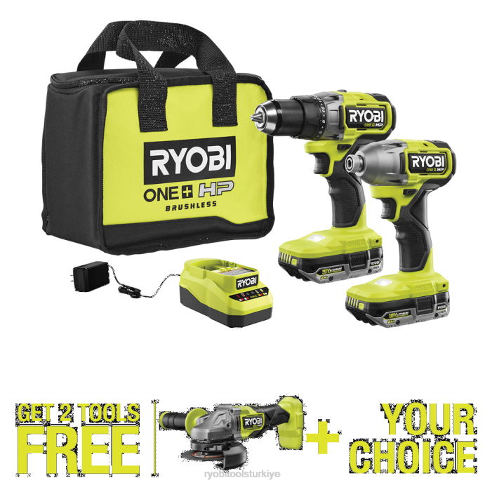 RYOBI 18v one+ hp fırçasız 2 aletli kombo kit, ücretsiz 18v one+ hp fırçasız 4-1/2 açılı taşlama/kesme aleti ve tercih edilen ücretsiz alet PLZ216