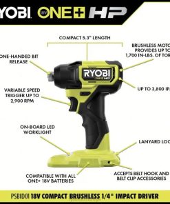 ryobi, (2) 1,5 ah pil, şarj cihazı ve çantayla birlikte 18v one+ hp fırçasız kablosuz kombo kitini (6 aletli) tanıtıyor. Fırçasız motorlara sahip bu kompakt aletler daha fazla güç, hız ve çalışma süresi sunar. 1/2 inçlik matkap/tornavida, daha fazla kullanıcı kontrolü için 2 vitesli bir şanzımana sahiptir ve 400 inç/lbs’ye kadar güç sağlar. tork. 1/4 inç darbe sürücüsü 1.700 inç/lbs’ye kadar sunar. tork ve 2.900 rpm’ye kadar. kesme aleti metal, fayans, plastik ve daha fazlasını kesme özelliğine sahiptir. 3/8 inç dik açılı matkap, 3,6 inç uzunluğundaki en kompakt 18v dik açılı matkaptır. Tek elli panter testere, şarj başına 100’den fazla kesim sağlayan kompakt 13 inç uzunluğundaki baş üstü uygulamalar için idealdir. 3/8 inç darbeli anahtar, çeşitli şekillerde kullanıcı kontrolü için 3 hız + otomatik mod içeriruygulamalar. bu 6 aletli birleşik kit, ryobi 3 yıllık üretici garantisiyle desteklenir ve şunları içerir: (1) psbdd01 18v one+ hp kompakt fırçasız 1/2 inç matkap/tornavida, (1) psbid01 18v one+ hp kompakt fırçasız 1/4 inç. darbeli vidalama makinesi, (1) psbcs02 18v one+ hp kompakt fırçasız kesme aleti, (1) psbra02 18v one+ hp kompakt fırçasız 3/8 inç dik açılı matkap, (1) psbrs01 18v one+ hp kompakt fırçasız tek elli panter testere, (1) psbiw01 18v one+ hp kompakt fırçasız 4 modlu 3/8 inç darbeli anahtar, (2) pbp002 1,5 ah lityum iyon piller, şarj cihazı, alet çantası ve kullanım kılavuzları