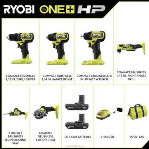 ryobi, (2) 1,5 ah pil, şarj cihazı ve çantayla birlikte 18v one+ hp fırçasız kablosuz kombo kitini (6 aletli) tanıtıyor. Fırçasız motorlara sahip bu kompakt aletler daha fazla güç, hız ve çalışma süresi sunar. 1/2 inçlik matkap/tornavida, daha fazla kullanıcı kontrolü için 2 vitesli bir şanzımana sahiptir ve 400 inç/lbs’ye kadar güç sağlar. tork. 1/4 inç darbe sürücüsü 1.700 inç/lbs’ye kadar sunar. tork ve 2.900 rpm’ye kadar. kesme aleti metal, fayans, plastik ve daha fazlasını kesme özelliğine sahiptir. 3/8 inç dik açılı matkap, 3,6 inç uzunluğundaki en kompakt 18v dik açılı matkaptır. Tek elli panter testere, şarj başına 100’den fazla kesim sağlayan kompakt 13 inç uzunluğundaki baş üstü uygulamalar için idealdir. 3/8 inç darbeli anahtar, çeşitli şekillerde kullanıcı kontrolü için 3 hız + otomatik mod içeriruygulamalar. bu 6 aletli birleşik kit, ryobi 3 yıllık üretici garantisiyle desteklenir ve şunları içerir: (1) psbdd01 18v one+ hp kompakt fırçasız 1/2 inç matkap/tornavida, (1) psbid01 18v one+ hp kompakt fırçasız 1/4 inç. darbeli vidalama makinesi, (1) psbcs02 18v one+ hp kompakt fırçasız kesme aleti, (1) psbra02 18v one+ hp kompakt fırçasız 3/8 inç dik açılı matkap, (1) psbrs01 18v one+ hp kompakt fırçasız tek elli panter testere, (1) psbiw01 18v one+ hp kompakt fırçasız 4 modlu 3/8 inç darbeli anahtar, (2) pbp002 1,5 ah lityum iyon piller, şarj cihazı, alet çantası ve kullanım kılavuzları