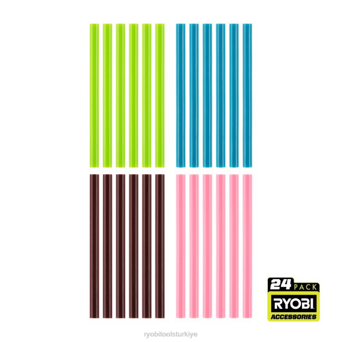 ryobi 24’lü paket mini çeşitli renkli tutkal çubuğu seti ahşap, plastik, seramik, kumaş, karton üzerinde kullanım için mükemmeldir ve çeşitli kumaşlar. ikili erime özelliği sizi çeşitli uygulamalara hazırlar. En iyi sonuçları elde etmek için her zaman ryobi aletlerinizi ryobi aksesuarlarıyla eşleştirin. ryobi a1932410, 6 pembe, 6 turkuaz, 6 limon yeşili ve 6 bordo mini tutkal çubuğu içerir.