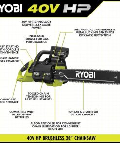 RYOBI 40v hp fırçasız 20 motorlu testere seti PLZ2352