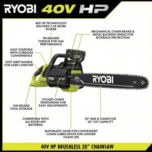 RYOBI 40v hp fırçasız 20 motorlu testere seti PLZ2352