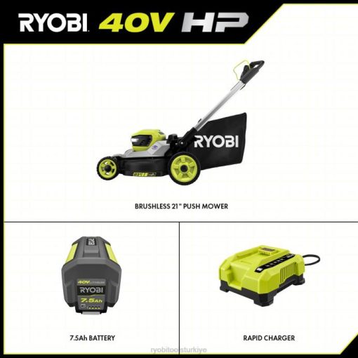RYOBI 40v hp fırçasız 21 itmeli çok bıçaklı çim biçme makinesi seti PLZ2239