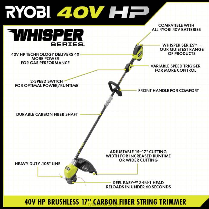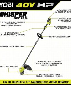RYOBI 40v hp fırçasız fısıltı serisi 17 karbon fiber şaft ot biçme makinesi kiti PLZ2285