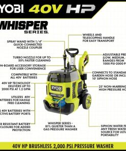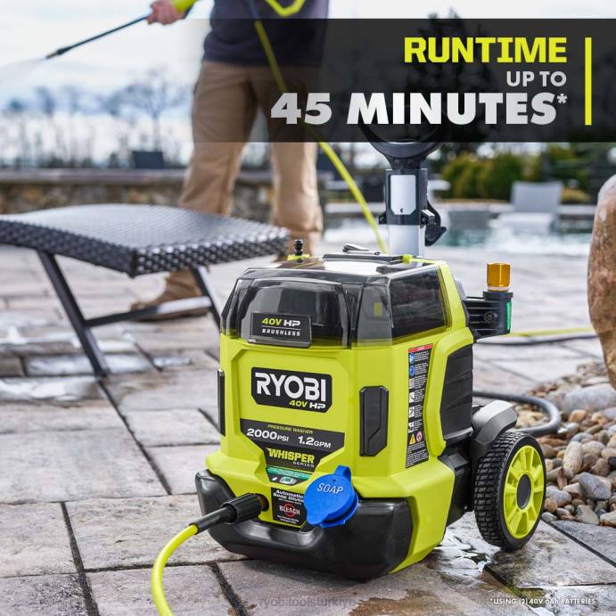 40v sisteminizi ryobi 40v hp basınçlı yıkama makinesiyle geliştirin. gelişmiş 40v hp teknolojisi, fırçasız bir motor, gelişmiş elektronikler ve lityum pil kullanarak 2.000 psi ve 1,2 gpm’ye kadar güç sağlar; bu elektrikli süpürgeyi ev dış cephe kaplaması, tekneler, kaldırımlar, araba yolları ve terasların temizliği için mükemmel kılar. Gazsız, bakımsız ve zahmetsiz, güçlü, taşınabilir temizliği deneyimleyin. güç çıkışı 1.000-2.000 psi arasında değişen üç farklı güç ayarına ayarlanabilir; bu da bu basınçlı yıkama makinesini hem hassas hem de zorlu temizlik işlerini tamamlamak için ideal kılar. fırçasız motor ve lityum teknolojisi (2) 40v 6ah pil ile 45 dakikaya kadar çalışma süresi sağlar. Bu fısıltı serisi basınçlı yıkama makinesi, g’den %81 daha sessiz olacak şekilde tasarlanmıştır.basınçlı yıkama makineleri olarak günün her saatinde başkalarını rahatsız etmeden temizlik yapmanıza olanak tanır. Hızlı, iz bırakmayan temizlik için ry31012vnm 12″ yüzey temizleyici, etkili kir ve döküntü giderme için ry31211 su süpürgesi ve kontrollü köpük deterjan dağıtımı için ry31f04 köpük püskürtücü ile basınçlı yıkama makinenizi geliştirin. Hepsinden iyisi, ryobi 40v’nin bir parçasıdır herhangi bir 40v pilin herhangi bir 40v ürünle çalıştığı sistem. bu 40v hp basınçlı yıkama makinesi, ryobi 5 yıllık üretici garantisiyle desteklenmektedir. bu basınçlı yıkama makinesi, ry40306 40v basınçlı yıkama makinesini, tetik kolunu, püskürtme çubuğunu, 25′ bozulmayan yüksek basıncı içerir hortum, 10′ sifon hortumu, başlıklar (15 derece, sabun ve turbo), kendinden emişli adaptör ve kullanım kılavuzu. pil ve şarj cihazı ayrı satılır.
