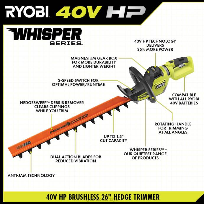 40v hp 26” çit budama kitiyle 40v sisteminizi geliştirin. 40v hp teknolojisi, gaz veya kablo sıkıntısı olmadan 23cc’lik gazlı çit düzelticiden daha fazla güç sağlar. Birlikte verilen 40v 2ah pili kullanarak 29 dakikaya kadar çalışma süresi elde edeceksiniz. 40v teknolojisi, fırçasız motor gelişmiş elektroniği ve yüksek performanslı lityum teknolojisini 26 inç bıçaklarla ve etkileyici 1 inç kesme kapasitesiyle birleştirerek kalın çitlerin kolaylıkla üstesinden gelir. Sıkışma önleme teknolojisi, çift etkili bıçaklar bıçakların dallara sıkışmasını önler Daha az titreşim ve daha az yorgunluk ile çitlerin üzerinden geçin. Bu fısıltı serisi düzeltici, gazlıdan %72 daha sessiz ve hatta diğer akülü çit düzelticilerden bile daha sessiz olacak şekilde tasarlanmıştır. Magnezyum dişli kutusu dayanıklılığı artırır.dayanıklılık sağlar ve çit düzelticiyi daha hafif hale getirir. Dönen sap, çitleri ve çalıları her açıdan rahatça kesmenize olanak tanırken, çit süpürücüsü, siz budama yaparken kırpıntıları temizlemeyi kolaylaştırır. 2 vitesli anahtar, gücü en üst düzeye çıkarmak veya çalışma süresini optimize etmek için iki kesme hızı arasında seçim yapmanızı sağlar. hepsinden iyisi, herhangi bir 40v pilin herhangi bir 40v ürünle çalıştığı ryobi 40v sisteminin bir parçasıdır. Bu 40v hp çit düzeltici, ryobi 5 yıllık üretici garantisiyle desteklenir ve birlikte verilen pil, ryobi 3 yıllık pil garantisiyle desteklenir. bu kit, ry40606 40v çit düzelticiyi, op40204 40v 2ah lityum pili, op406 40v hızlı şarj cihazını, çit süpürme kalıntı çıkarıcısını, kınını ve kullanım kılavuzlarını içerir.