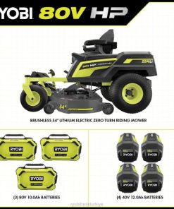 ryobi’nin ilk lityum iyon pille çalışan sıfır dönüşlü çim biçme makinesini tanıtan ryobi 80v hp 54″ lityum elektrikli ztr*.hp teknolojisi ve 80v piller, 42 beygir gücüne eşdeğer güç sağlamak üzere bir araya geliyor Benzinli motor*, gazlı çim biçme makinesinin zahmetini ve bakımını ortadan kaldırırken, bu sürücü, 5 fırçasız motor, (3) 80v 10ah piller ve (4) 40v 12ah pillerin yardımıyla şarj başına 4 dönüme kadar kesim yapar. 5 saatte tamamen şarj olan şarj cihazı, böylece bir sonraki işinize hazır olursunuz. Devrim niteliğindeki iDrive sistemi, nesnelerin etrafında geleneksel ztr’ye göre daha kolay manevra yapmak için sezgisel tek elle kumanda kolu direksiyonu kullanır. Yenilikçi LCD ekran çalışma süresini, pil ömrünü, ve kullanım sırasında kesme/sürüş hızını artırırken, sürüşlü çim biçme makinesi uygulaması şarj süresini ve aküyü izlemenize olanak tanıruzaktan hayat. Bu binicili çim biçme makinesi, üstün kesme ve malçlama performansı sağlayan çapraz kesimli çoklu bıçak sistemine sahiptir ve 12 noktalı yükseklik ayarı, 1,5″ ile 4,5″ arasında mükemmel kesme yüksekliğini seçmenize olanak tanır. kauçuk yan boşaltma kanalı çevre düzenlemesinde manevra yapmayı kolaylaştırır, böylece kullanıcılar kesebilecekleri yerle sınırlı kalmaz. Konfor ve rahatlık göz önünde bulundurularak tasarlanan bu çim biçme makinesinde birinci sınıf koltuk süspansiyonu, telefonları şarj etmek için 2 USB bağlantı noktası, bir saklama bölmesi ve led farlar bulunur. mobil hizmet belirli bölgelerde mevcuttur. Çim biçme makinenizin bakıma ihtiyacı varsa, sertifikalı bir ryobi destek teknisyeni doğrudan evinizden teşhis ve servis hizmeti verebilir. Bazı servisler çim biçme makinenizi ülke çapındaki 300’den fazla servis merkezinden birine getirmenizi gerektirebilir. Ryobi 80v hp fırçasız 54″ lityum elektrikli sıfır dönüşlü çim biçme makinesi sayesinde çim bakımı asla eskisi gibi olmayacak.