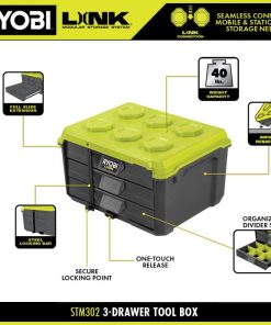 ryobi link modüler depolama sistemi, depolama endüstrisinde devrim yaratarak hayatınızı düzenlemenize, erişmenize ve taşımanıza olanak tanıyor. ryobi link 3 çekmeceli alet kutusu, en zorlu durumlarda aletlerin saklanmasını sağlar. Darbeye dayanıklı malzeme ve 40 lb. yük kapasitesi ile donatılmıştır. Taşınabilir alet saklama alanınızı, saklanabilir çelik kilit çubuğu ve güvenli kilitleme noktasıyla kolayca sabitleyin. tam uzatmalı kızaklar sorunsuz çalışma sağlarken, birlikte verilen düzenleyici bölücü seti, küçük parçaları yerlerinde tutarak maksimum ryobi alet depolama organizasyonu sağlar. herhangi bir ryobi bağlantısı mobil depolama öğesine sorunsuz bir şekilde yığın. bu, mobil alet kutusu serinize mükemmel bir eklentidir. hepsinden iyisi, aynı lo’yu kullanan Ryobi Link modüler depolama sistemi ürün serisinin bir parçasıdır.Mobil ve sabit depolama ihtiyaçlarınızı sorunsuz bir şekilde birbirine bağlayan teknoloji. ryobi link modüler depolama sistemi ile alanınıza sahip olun.
